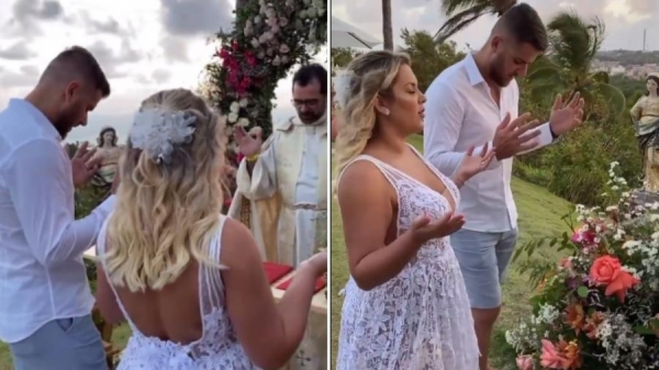 Natália Toscano, mulher do sertanejo Zé Neto, da dupla com Cristiano, surpreendeu o marido com uma cerimônia de renovação dos votos de casamento, na praia de Maragogi (AL), nas viagens de férias da família. A celebração aconteceu na manhã de hoje, ao nascer do sol. Natália reuniu os pais do casal e os filhos José Filho, 3 anos, e Angelina, 5 meses. Ela conta que Zé Neto não desconfiava de nada antes da cerimônia. "Resolvi fechar a viagem da gente para a praia na semana que a gente casou. Decidi fazer uma coisa diferente para celebrar nosso amor e nossa entrega", explicou Natália, ao postar vídeos da cerimônia no Instagram. Zé Neto admitiu que a surpresa que fez para a mulher esta semana, com um café da manhã romântico, ficou aquém da surpresa de Natália. "Você quase me mata do coração. Eu achei que estava arrasando com a surpresa que eu fiz, mas ela não sabe brincar", disse Zé Neto, depois da cerimônia.