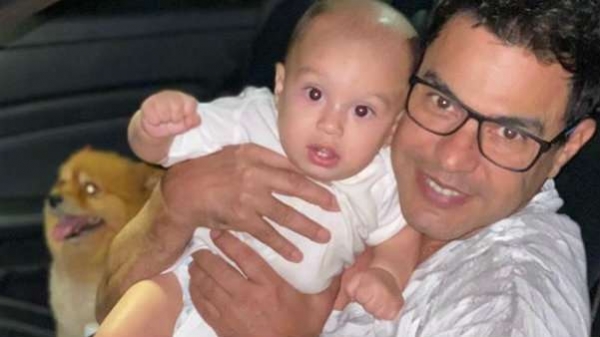 Zezé Di Camargo posa com o neto Joaquim e se declara: ”Amo esse carinha”