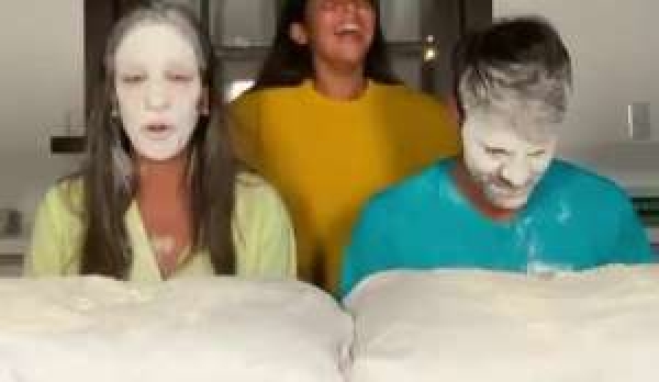 Ivete Sangalo e o marido, Daniel Cady, entraram na brincadeira do "Desafio da Farinha" e participaram do divertido jogo sob o comando o filho, Marcelo. O casal, que também é pai das gêmeas Marina e Helena, ficou completamente sujo de farinha e deu boas gargalhadas com as tiradas do menino, de 10 anos. "Não sei quem curtiu mais essa bagunça aí, né, filho e daddy?", assumiu a cantora, muito elogiada pelo clipe da música "Localizei", lançado no Dia dos Namorados com muitos beijos de casais famosos.